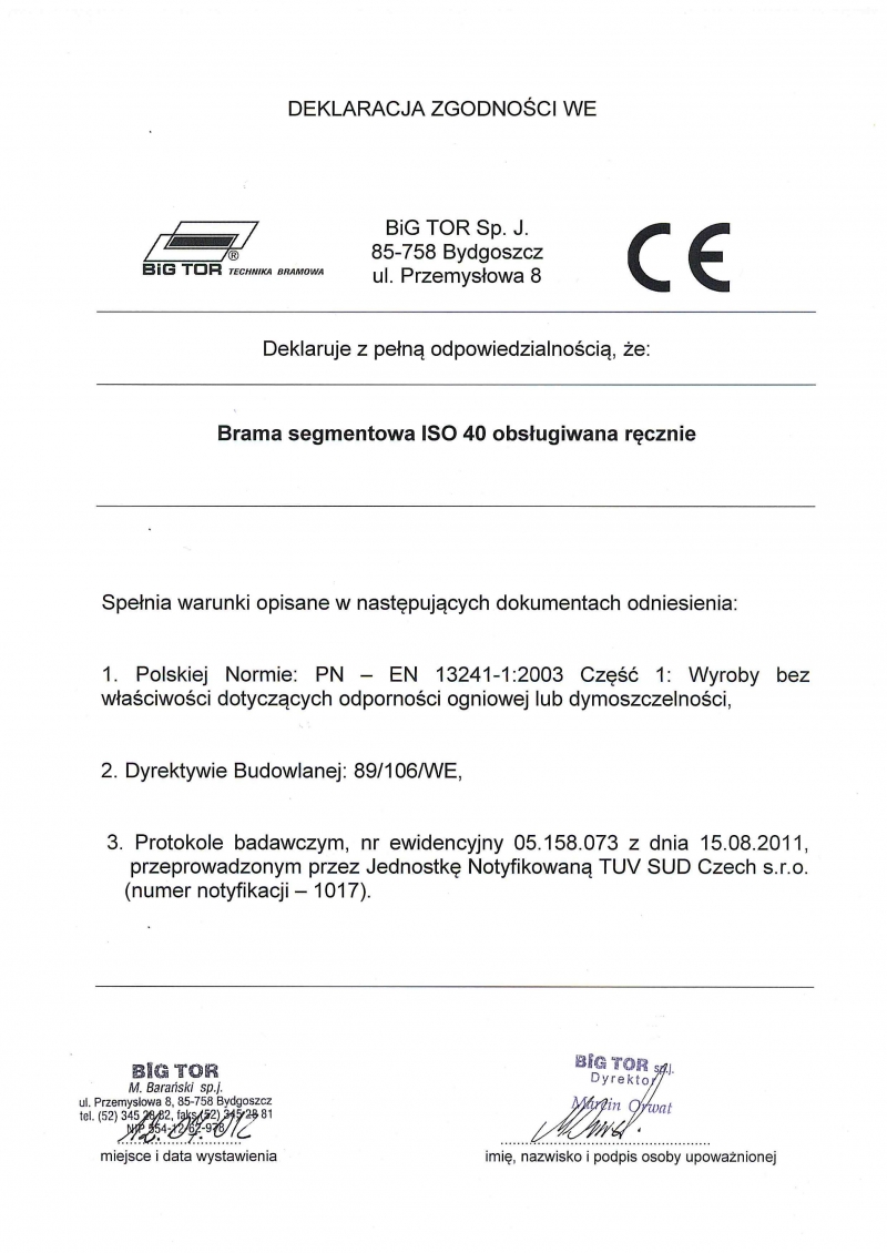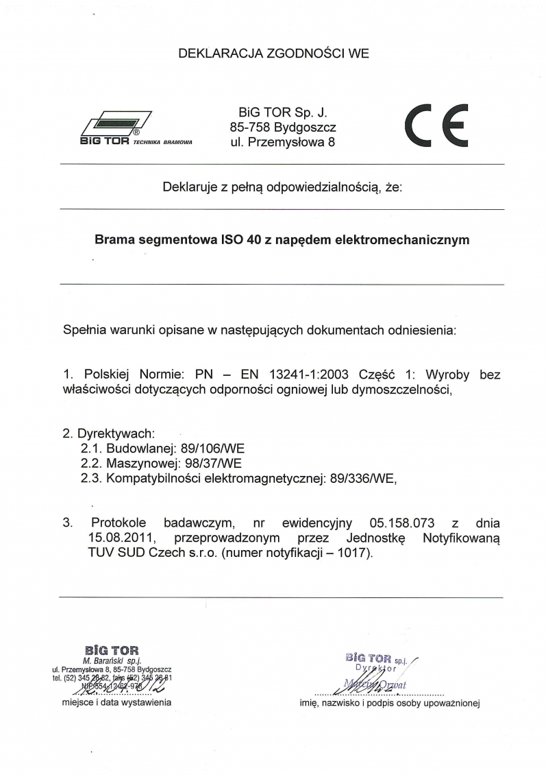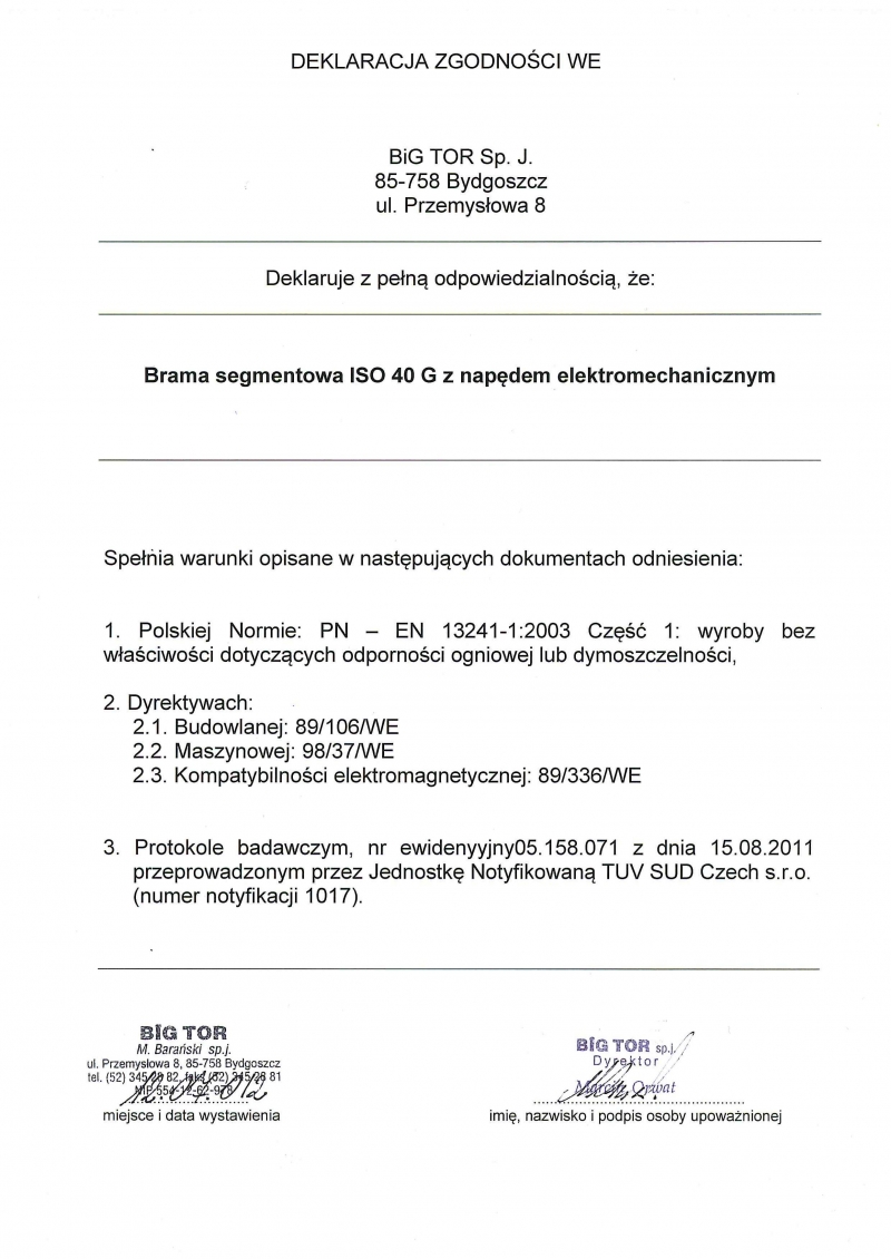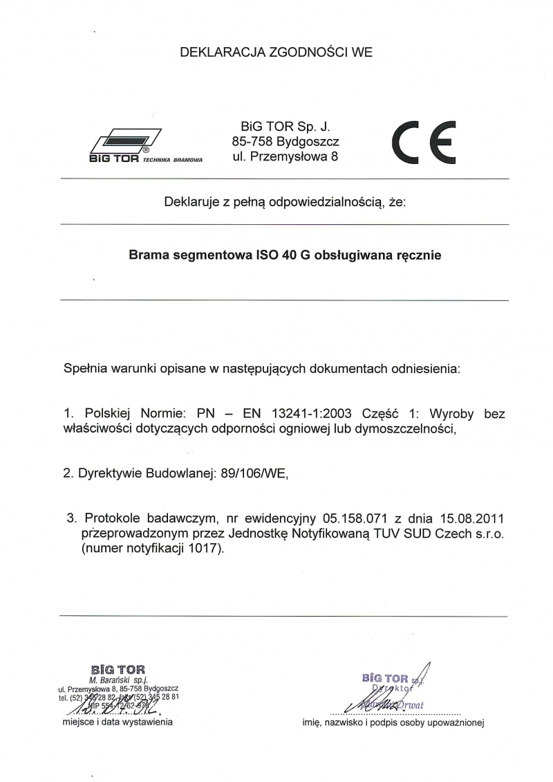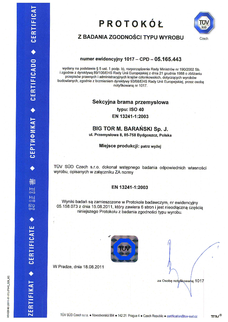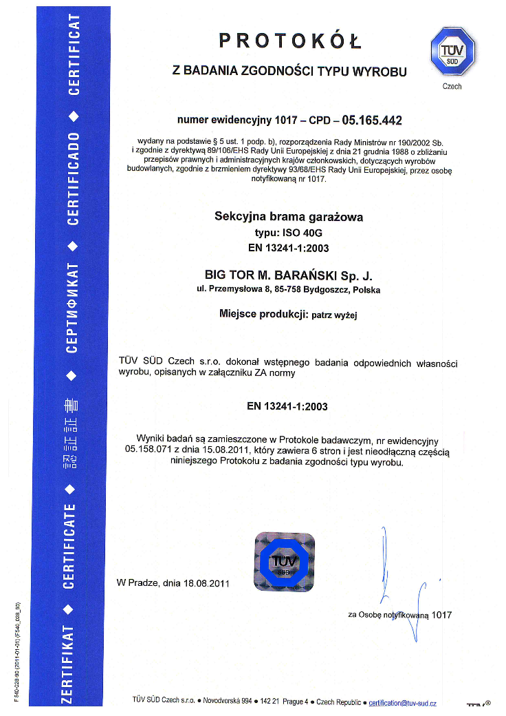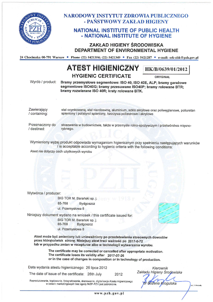 ATEST HIGIENICZNY na bramy BIG TOR