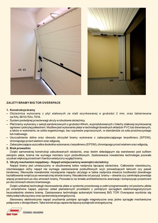 bezszelestnie otwiera bramę. Zastosowana technologia automatyki bramowej BiG TOR Overspace wyróżnia się