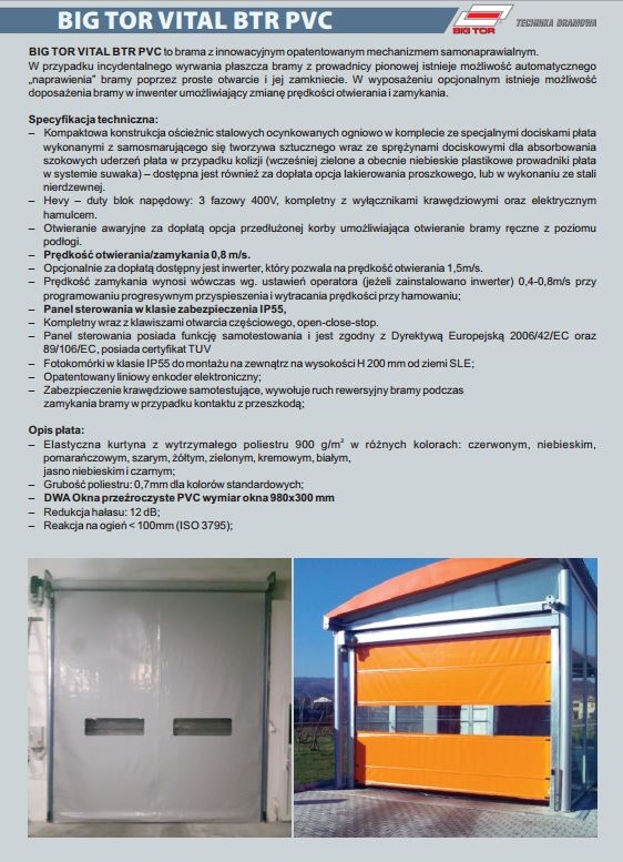 BIG TOR VITAL BTR PVC to brama z innowacyjnym opatentowanym mechanizmem samonaprawialnym.