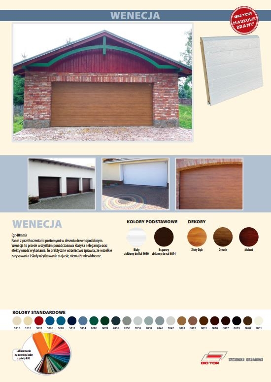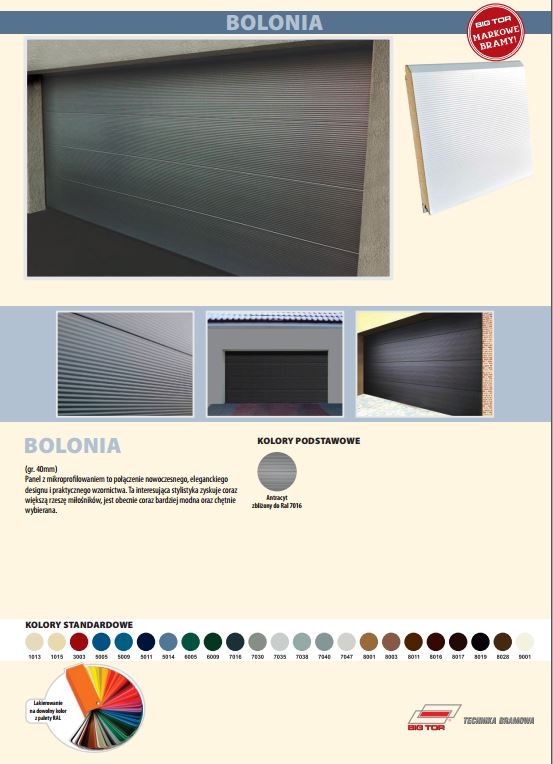 Bramy segmentowe garażowe BIG TOR ISO 40G łączą nowoczesny styl i estetykę z komfortem użytkowania i funkcjonalnością. Bramy garażowe BIG TOR cechuje dźwiękochłonność i wysoka izolacyjność cieplna. Bogata paleta struktur, kolorów i dekorów pozwala na stworzenie idealnego produktu wedle życzenia i zapotrzebowania klienta i sprawia, że bramy garażowe BIG TOR dopasowują się do elewacji i architektury domów jednorodzinnych, tworząc z nimi wspólną estetyczną całość.