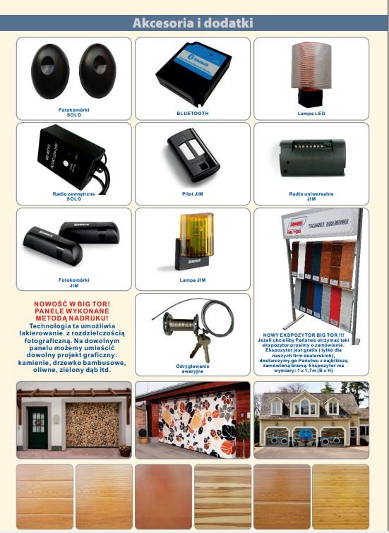 - zabezpieczenie na pęknięcie sprężyn - Otwieranie bramy za pomocą pochwytów i/lub za pomocą linki lub napędu elektrycznego